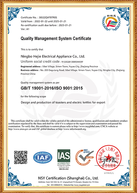 Ningbo HEJIE Electric Appliance Co., Ltd is a comprehensive enterprise engaged in manufacture, marketing, research and development of home appliances. Our company occupies 10,000 square meters. Our company strictly follows ISO9001:2015 version and BSCI, has worked out strict quality control regulations, set up a perfect and logic quality control system based on a strict management mode, standard management, correct and rational quality requirements, continuous absorption, accumulation and summarization of experience, Etc. Our company has strong production strength and strong development team.